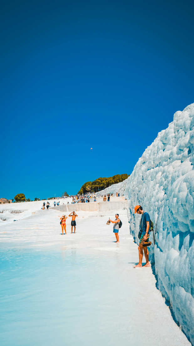 Jedna od najpoznatijih atrakcija u Pamukalama je Kleopatrin bazen, gde posetioci mogu plivati među antičkim stubovima. Voda u ovom bazenu je topla tokom cele godine i bogata mineralima, što dodatno doprinosi njenim lekovitim svojstvima. Osim kupanja, posetioci mogu istraživati okolinu, planinariti po uređenim stazama i posetiti muzeje u okviru arheološkog kompleksa. Ova destinacija nudi i mnoge prilike za fotografisanje, posebno u trenutku zalaska sunca, kada bele kaskade izgledaju posebno spektakularno.
